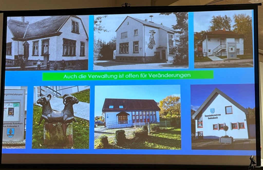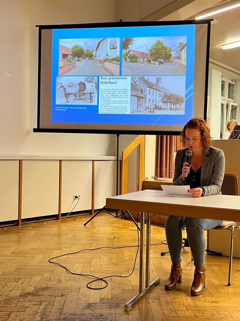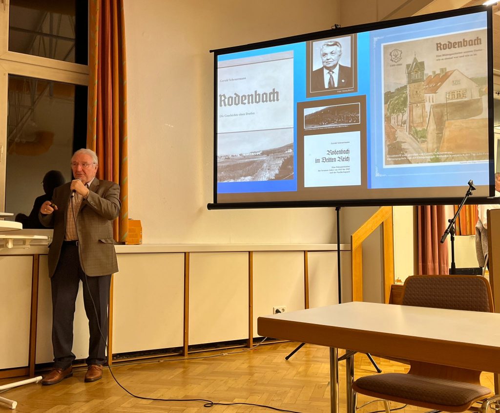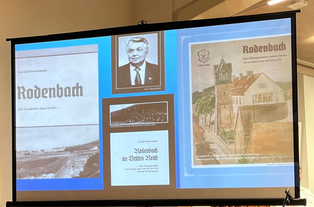 Im Anschluss präsentierte Wolfgang Kleemann seine Fotoschau „Rodenbach im Flug der Zeit“ mit Bildern aus den Büchern von Gerold Scheuermann sowie eigenen Fotos, in welche er zwei Lesebeiträge aus dem Buch von Theophil Blauth, gelesen von Beate Mendia (geb. Blauth) und Simone Scholl, eingebaut hat. In diesem interessanten Beitrag konnte man die Entwicklung und das Wachstum Rodenbachs mit Schwerpunkt der letzten 100 Jahre sehen.